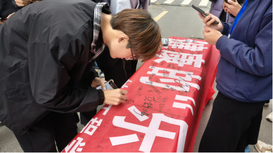 组织人员提前完成场地布置与流程规划,将主题横幅铺展于现场核心区域,按照预先安排的引导流程,组织学生在横幅上签字。许多同学积极参与并持笔在横幅指定区域写下姓名,同学们动作规范有序。签字过程中,部分学生结合自身感受,轻声交流对心理健康的基本认知,现场保持着安静而专注的氛围。签字环节在有序地组织下顺利推进,充分体现活动的主题导向,不少同学在签字后还主动询问后续心理健康活动的安排。
