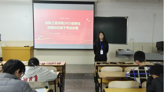 为进一步提升学生纪律素养,培养学生自觉遵守校规校纪的良好意识与行为习惯,营造知规守矩的校园文化氛围,材料工程学院于11月3日晚8:00在教学楼517、518、519、520开展校规校纪知识比赛初赛。