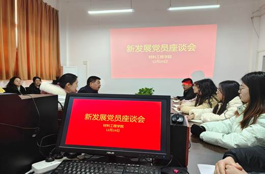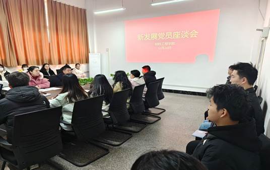 12月24日下午,材料工程学院在工美楼108组织召开新发展党员座谈会。学院党委书记辛长征、组织员李佩瑶以及24名新发展党员参加会议。本次会议由李佩瑶主持。