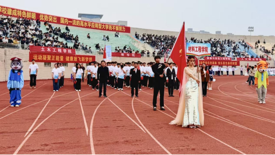 开幕式上,学院方阵步伐整齐、精神抖擞,以干练有力的姿态展现材料学子奋勇争先的青春风采。啦啦操成员带来的活力舞蹈表演也惊艳登场,灵动的步伐、整齐的动作与饱满的热情交织,瞬间点燃现场氛围,将材料学院的青春活力与团队凝聚力展现得淋漓尽致。